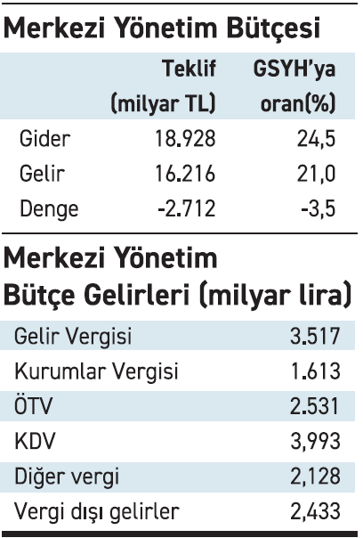 2026 yılı Merkezi Yönetim Bütçesi, 16.2 trilyon liralık gelire karşılık 18.9 trilyon liralık gider ve bunun sonucu 2.7 trilyon liralık açık öngörüsüyle bağandı. Teklif 23 Ekim’de Plan ve Bütçe Komisyonu’nda görüşülmeye başlayacak.