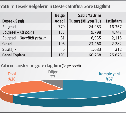 Bu dönemde düzenlenen yatırım teşvik belgesi sayısı yüzde 47, sabit yatırım tutarı yüzde 59 ve öngörülen istihdam yüzde 10 arttı.