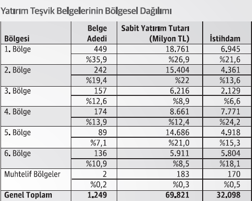 Özellikle Doğu ve Güneydoğu Anadolu illerinde istihdam artışı sağlamak, teşvik sisteminin önemli hedeflerinden biri olup, Doğu ve Güneydoğu Anadolu illerinin yer aldığı 5. Bölge ve 6. Bölgede öngörülen istihdam toplamı 13.439 kişi ile toplam öngörülen istihdamın %52’sini oluşturdu.