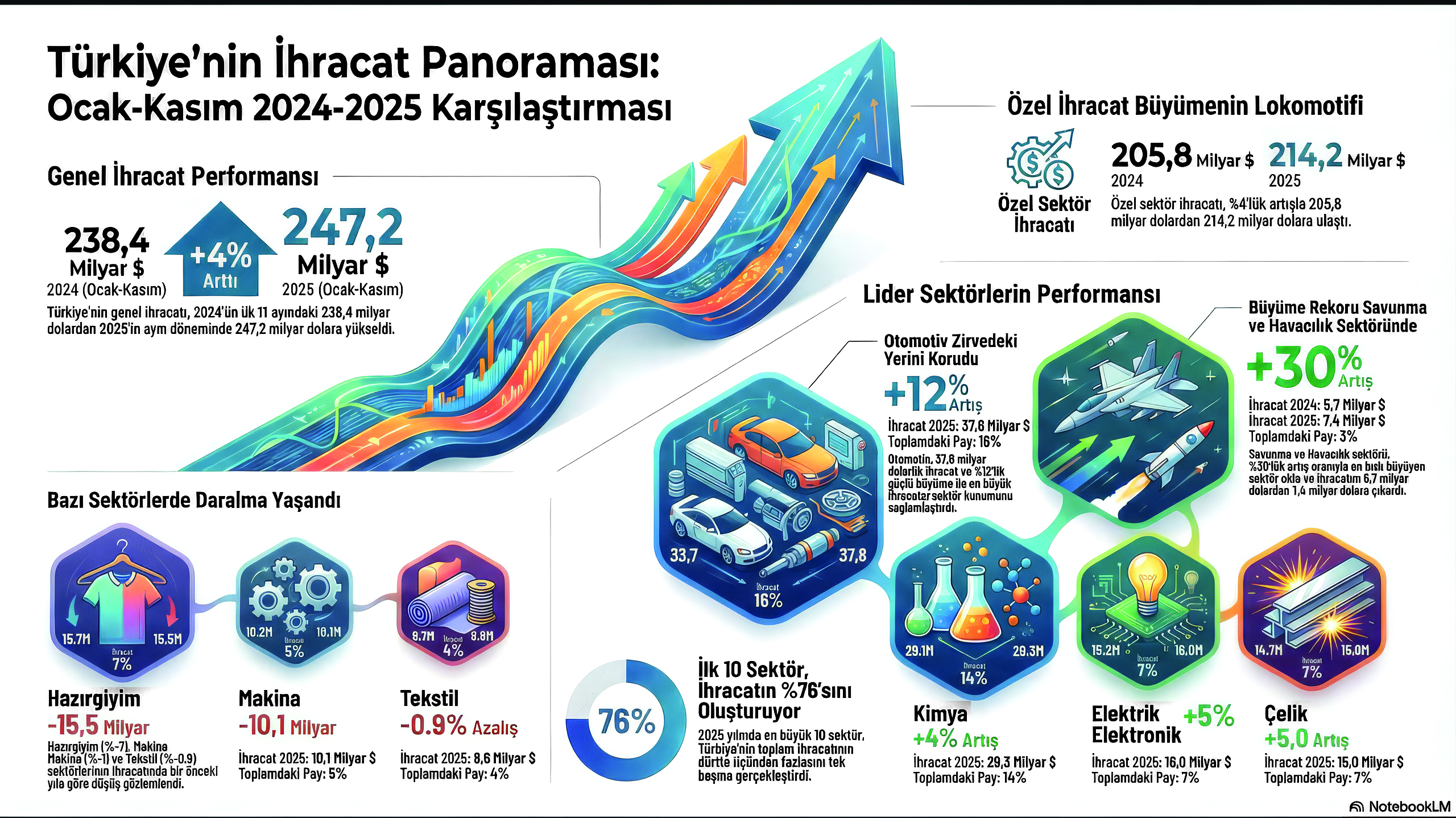 Elektrik ve elektronik sektörü ihracatı, 2025 yılı Kasım ayında geçen yılın aynı ayına göre yüzde 2 artarak 1,479 milyar dolardan 1,505 milyar dolara yükseldi. Ocak–kasım dönemini kapsayan kümülatif ihracat ise yüzde 5 artışla 16,3 milyar dolar seviyesine ulaştı.