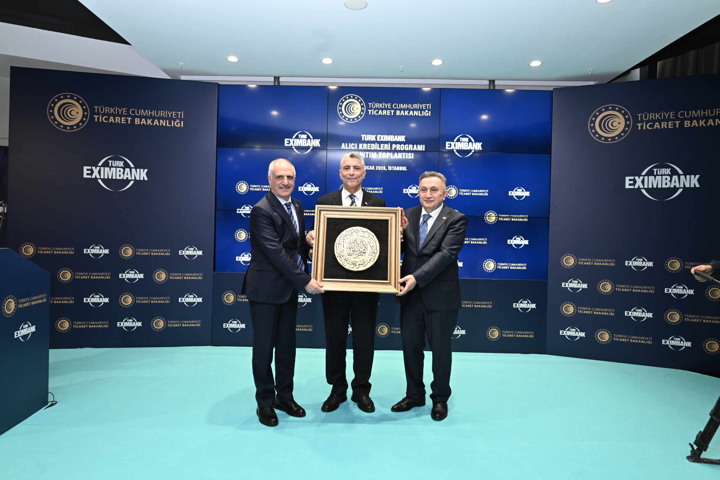 Toplantının ardından Türk Eximbank Yönetim Kurulu Osman Çelik ve Türk Eximbank Genel Müdürü Ali Güney, günün anısına istinaden Ticaret Bakanı Prof. Dr. Ömer Bolat’a bir hediye takdim etti.