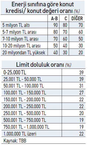 BDDK’nın kararına göre Konut kredilerinde; kredi tutarının teminat olarak alınan konutun değerine oranı açısından birinci el - ikinci el konut ayrımı kaldırıldı, 2010 yılından sonra yapılan binaların enerji sınıfı için asgari şart olan C enerji sınıfına sahip konutlar da avantajlı kredi değer oranı uygulanan konutlar kapsamına alındı. Bu çerçevede, konut kredilerine ilişkin düzenlemelerde enerji verimliliği yüksek, görece depreme dayanıklı yeni konutların alımı ile ilk konutunu edinecek tüketicilerin desteklenmesine yönelik değişiklikler yapıldı. En az bir konutu bulunması halinde ise oranların yüzde 75 azaltılarak uygulanmasına devam edilecek.
