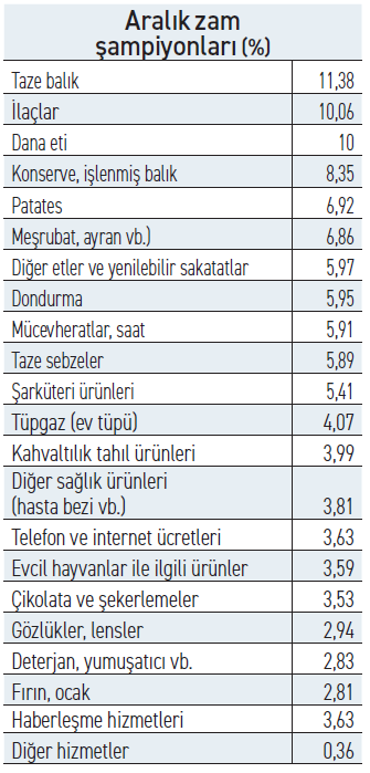 Ev eşyası grubunda aylık yüzde 1,56, sağlıkta yüzde 1,97 artışlar oldu, ulaştırma grubunda ise yüzde 1,03 aralık ayında fiyat düşüş yaşandı. Uçak fiyatlarında yüzde 32,95'lik aylık düşüş ile benzin ve motorinde yüzde 2,51'lik yine fiyat azalmaları bu grupta enflasyonun gerilemesini sağlarken yıllık enflasyon ulaştırma grubunda yüzde 28,44 oldu ve manşet enflasyonu 4.36 puan artırdı.