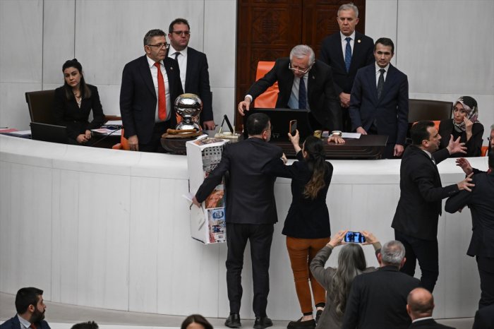 Aranın ardından birleşimi açan Adan, TBMM İçtüzük'üne göre Genel Kurulun çalışma düzenini ve huzurunu bozucu döviz pankart benzeri materyal getirmenin ve kullanmanın yasak olduğunu hatırlatarak, bu konuda siyasi partilerin grup başkanvekilleri arasında da mutabakat imzalandığını anımsattı.