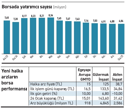 Tüm bu gelişmeler yaşanırken Sermaye Piyasası Kurulu yeni yılla birlikte üst üste halka arz izinleri yayımlıyor. Oysa geçen yılın ekimden sonra aralık ayı ortasına kadar SPK’dan yeni halka arz izni çıkmamış piyasadaki dalgalı seyir nedeniyle halka arzlara da ara verilmişti. Aralık ayının ikinci yarısıyla itibaren yeniden halka arz onayları çıkmaya başladı ve yeni yılın ilk ayıyla birlikte ise hızlandı. Aynı dönemde borsadaki yatırımcı sayısı 7 milyonun altında kalmaya ve azalmaya devam etti.