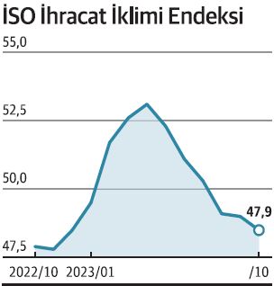 İSO’dan yapılan açıklamaya göre, Türk imalat sanayi ihracatçıları, yılın son çeyreğinin başında zorlu bir talep ortamıyla karşı karşıya kalmaya devam ederken, son aylarda olduğu gibi, zayıflık yine büyük ölçüde Avrupa’daki ana ihracat pazarlarında süregelen yavaşlamadan kaynaklandı.