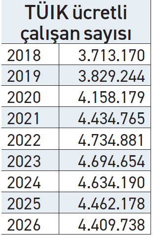 2025 sonunda ise SGK kayıtlarında toplam ücretli çalışan sayısı 1 milyon 153 bin kişisi kadın olmak üzere, 3 milyon 871 bin kişi, TÜİK’te ise 4 milyon 462 bin kişi tespit edildi. Zirve yılından 2025 sonuna kadar azalan imalat sanayii çalışan sayısı SGK’da 1.1 milyon kişi olduğu gözleniyor ancak bu kişilerin büyük kısmının EYT düzenlemesi nedeniyle emekli olduğu halde çalışmaya devam eden kişiler olduğu dikkate alındığında, TÜİK kayıtları daha öne çıkıyor. Yine de SGK verileri, imalat sanayiindeki istihdam hareketliliğini büyük oranda yansıtıyor.