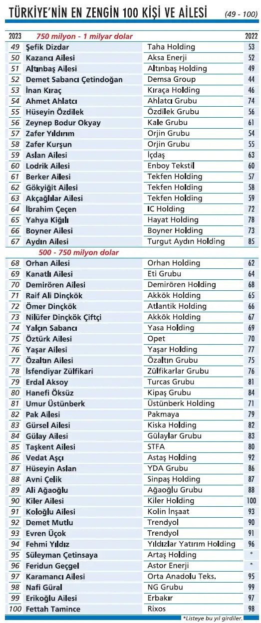 2022 listesinde 10'uncu sıra Zorlu Ailesi'nin olurken, bu yılki listede 10'uncu sırayı Erdemoğlu Ailesi aldı.
