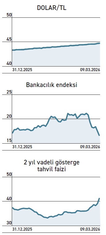 ABD ve İsrail’in İran’a yönelik başlattığı savaş ve İran’ın Ortadoğu petrol üreticisi ülkelere yönelik saldırıları ikinci haftasına girdi. Türkiye ve küresel piyasalar ilk haftadan daha karamsar. Petrol fiyatlarında ilk büyük dalga Hürmüz Boğazı’nın kapanmasıyla başlarken ikinci dalga üretici ülkelerde üretime ara verilmesi ile geldi. Düne 110 doların üzerinde başlayan Brent petrol G7 ülkelerinin rezervleriyle piyasayı destekleyeceği haberiyle 104 dolar seviyelerine indi, gün içinde 100 doların altı görüldü. Ancak her durumda başta Türkiye Cumhuriyet Merkez Bankası olmak üzere petrol fiyatlarıyla ilgili öngörüler saptı. Savaşın ne kadar süreceğine yönelik belirsizlik küresel çapta enflasyon endişelerini arttırdı merkez bankalarından şahin tavırlar bekleniyor. TL varlıklarda satış dün de sert sürerken perşembe günkü Merkez Bankası Para Piyasası Kurulu toplantısında beklenti pas geçilmesi.