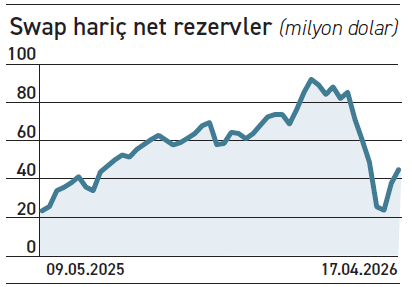 Türkiye Cumhuriyet Merkez Bankası savaş döneminde yaptığı 50 milyar doları bulan döviz satışının 21 milyar dolarını ateşkes ilanından sonra geri aldı. 10 Nisan ve 17 Nisan haftalarında sırasıyla 12.5 ve 8.5 milyar dolarlık alımlarla 21 milyar dolar döviz alımı gerçekleştiren Merkez Bankası böylece satışlarının yüzde 42’sini karşıladı. Merkez Bankası swap hariç net rezervi 39.2 milyar dolara yükseldi.