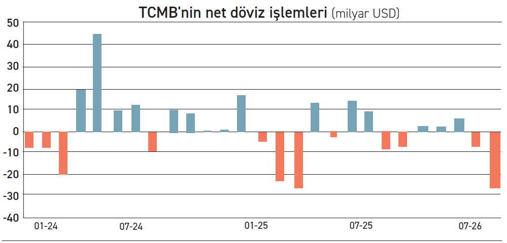 Net uluslararası rezervler içinde değerlendirilen yurt içi bankalarla yapılan satım yönlü swap hacminin 20 Mart haftasında 0.9 milyar dolar artmasının net rezervi olumsuz etkilediğini belirten QNB ekonomistleri altın fiyatlarının gerilemesinin ise net rezervde 7.5 milyar dolarlık azalışa yol açtığını vurguladı. Kamunun döviz mevduatı da incelenen hafta içerisinde 0.9 milyar dolar düştü. QNB ekonomistleri “Sonuç olarak, bu saydığımız işlemler net rezervin geçen hafta 9.3 milyar dolar gerilemesine neden olmuştur. Net rezervdeki değişimi dikkate aldığımızda, bunun dışında kalan işlemlerle toplamda 2.8 milyar dolar döviz satışı gerçekleştiğini hesaplıyoruz. Mart ayındaki döviz satışı 26.2 milyar dolara ulaştı” dedi.