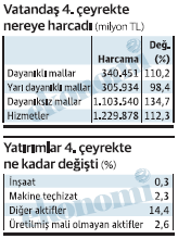 TÜİK verilerine göre milli gelirde harcamalar hesabında vatandaşın enflasyon beklentilerindeki bozulma nedeniyle öne çektiği tüketim harcamaları büyümeyi sırtladı. Özellikle Merkez Bankası indirimleriyle kredi kartı ve kredili mevduat hesaplarındaki düşük faiz oranları vatandaşın tüketimini de körükledi. 2022’nin tamamında vatandaşın tüketimi yüzde 19,7 arttı ve büyümeye 12.08 puan katkı verdi. 2022’nin son çeyreğinde yüzde 16,1 büyüyen vatandaşın tüketiminin ekonominin son çeyrek büyümesini pozitif etkisi 10.34 puan olarak hesaplandı. Deprem felaketi sonrası enflasyonda yükselişin hızlanması bekleniyor. Devletin tüketim harcamaları 2022 yılında yüzde 5,16 büyüdü ve 0.69 puan katkı verdi. Son çeyrekte de devlet harcamaları yüzde 9 büyümeyle 1.24 puanlık katkı sağladı. Ancak önümüz seçim ayrıca deprem harcamaları da var. İlk çeyrekte devletin tüketim harcamalarının daha hızlı artması ve büyümeye pozitif katkısının yükselmesi öngörülüyor.