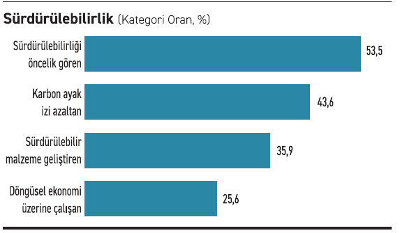 Sürdürülebilirlik, Ar-Ge merkezlerinin giderek daha fazla gündeminde yer alıyor. Katılımcıların yüzde 53,5’i karbon ayak izi ve çevresel etkiler gibi kriterleri Ar-Ge kararlarında yüksek öncelik olarak gördüklerini belirtiyor. Kurumların yüzde 43,6’sı karbon ayak izini azaltma çalışmaları yürütürken, yüzde 35,9’u sürdürülebilir malzeme geliştirme ve yüzde 25,6’sı döngüsel ekonomi modelleri üzerine çalışıyor.