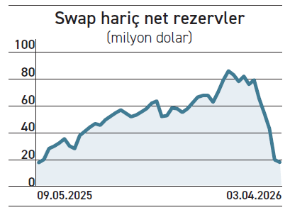 Orta Doğu’da savaşın TL üzerindeki etkilerini azaltmaya çalışan Merkez Bankası yoğunlukla yabancının çıkışına karşılık yüklü döviz satışı gerçekleştirdi. QNB Türkiye ekonomistlerinin hesaplamalarına göre savaşın başından 3 Nisan ile biten haftaya kadar 49.2 milyar dolarlık döviz satışı yapıldı. Bankalarla geçen hafta başlatılan döviz karşılığı TL swap işlemleri brüt ve net uluslararası rezervlerde savaş döneminin ilk yükselişini yaşatsa da swap hariç net rezervler geçen hafta 1.8 milyar dolar azalarak 18.4 milyar dolara indi. Bu seviye Mayıs 2025’ten bu yana görülen en düşük seviyeye işaret ediyor.