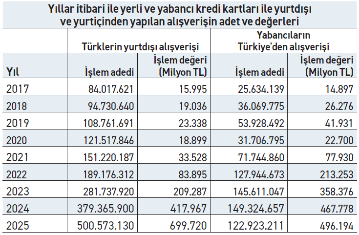 Türkiye’nin son yıllarda yurt dışına kıyasla pahalı bir ülke haline gelmesi, yerli ve yabancı tüketicinin fiziki alışveriş davranışlarını köklü biçimde değiştirdi. 2017’den bu yana her yıl yabancıların Türkiye’de yaptığı alışveriş, Türklerin yurt dışı harcamalarını açık farkla geride bırakırken, bu tablo 2025’te ilk kez tersine döndü. Bankalararası Kart Merkezi (BKM) verileri, yerli tüketicinin yurt dışına yöneliminin tarihi bir eşiği aştığını ortaya koydu. Tabloya göre Türklerin yurt dışı alışveriş harcamaları 2025’te bir önceki yıla göre yüzde 67 artarak 699,7 milyar TL’ye yükseldi. Bu rakamla yıllık bazda ilk kez turist alışverişini geçmekle birlikte aynı zamanda rekor da kırıldı. Aynı dönemde yabancıların Türkiye’de yaptığı harcamalar ise yalnızca yüzde 6 artışla 496,2 milyar TL’de kaldı. Daha çarpıcı olan ise işlem adedi tarafı oldu. Yabancıların Türkiye’den yaptığı alışverişte işlem sayısı 2024’te 149,3 milyon iken 2025’te 122,9 milyona geriledi. Buna karşılık Türklerin yurt dışı alışveriş işlem adedi 379,4 milyondan 500,6 milyona çıktı. Bu tablo, yabancıların Türkiye’de daha az sayıda ürünü daha yüksek fiyatlarla satın aldığını, Türk tüketicinin ise yurt dışında daha sık ve daha yaygın alışveriş yaptığını gösteriyor.