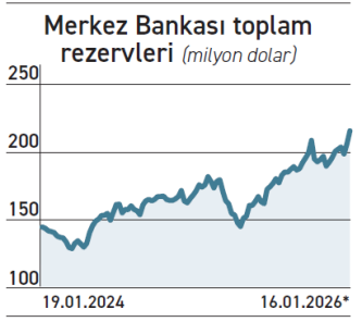 Net rezerv içinde değerlendirilen yurt içi bankalarla yapılan satım yönlü swap hacminin 16 Ocak haftasında 0.4 milyar dolar artmasının, net rezervi olumsuz etkilediğini belirten QNB ekonomistleri altın fiyatlarının yükselmesinin ise net rezervde 2.6 milyar dolarlık artışa yol açtığını belirtti. Kamunun döviz mevduatı da incelenen hafta içerisinde döviz cinsi 7 ve 12 yıl vadeli çift dilim tahvil ihracının etkisiyle 2.8 milyar dolar yükseldi. Ekonomistler “Sonuç olarak, bu saydığımız işlemler net rezervin geçen hafta 5 milyar dolar yükselmesine neden olmuştur. Net rezervdeki değişimi dikkate aldığımızda, bunun dışında kalan işlemlerle toplamda 3.1 milyar dolar döviz alışı gerçekleştiğini hesaplıyoruz” dedi. 9 Ocak haftasında da Merkez Bankası 6 milyar dolar seviyesinde alım yapmıştı.