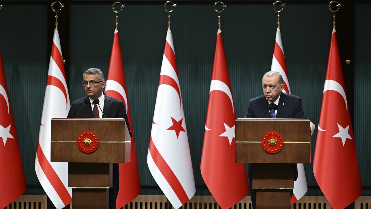 Cumhurbaşkanı Recep Tayyip Erdoğan, Cumhurbaşkanlığı Külliyesi'nde, baş başa görüşmenin ardından Kuzey Kıbrıs Türk Cumhuriyeti (KKTC) Cumhurbaşkanı Tufan Erhürman ile ortak basın toplantısı düzenledi, soruları cevapladı.