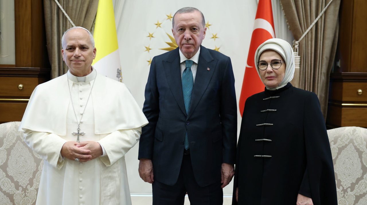Papa 14. Leo ve heyetini Ankara'da ağırlamaktan duyduğu memnuniyeti dile getiren Cumhurbaşkanı Erdoğan, Papa 14. Leo'nun göreve başladıktan sonra ilk yurt dışı seyahatini Türkiye'ye gerçekleştirmesini her bakımdan çok anlamlı bulduğunu söyledi.