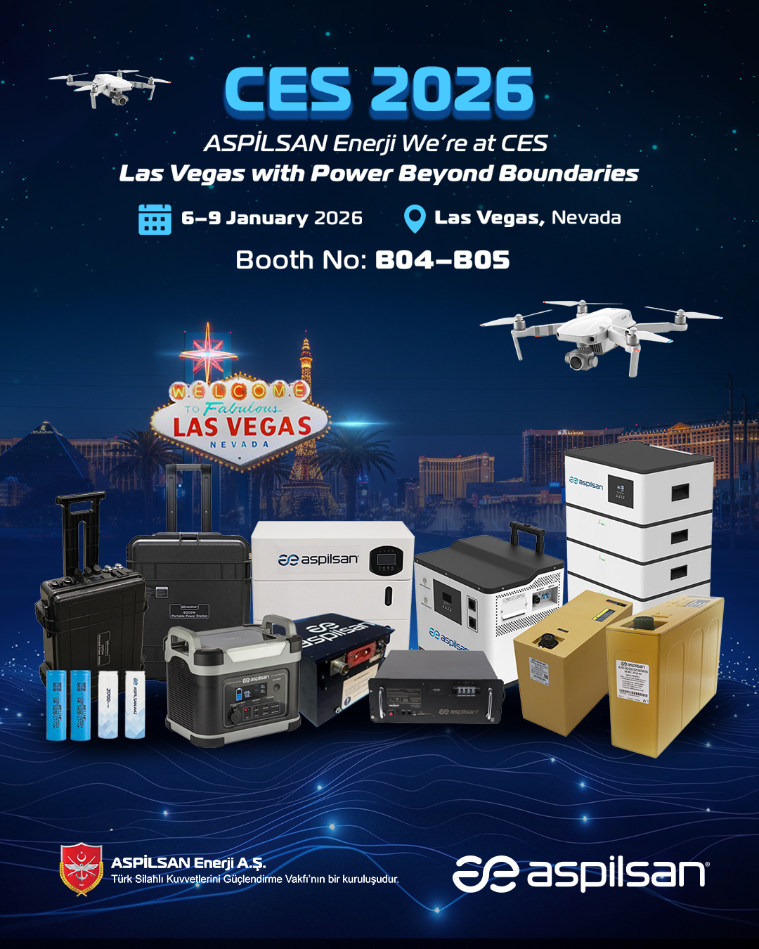 ASPİLSAN Enerji, inovasyon odaklı yaklaşımı ve sürdürülebilir enerji vizyonuyla, enerji depolama alanındaki küresel dönüşümde aktif rol alma hedefini CES 2026’da bir kez daha ortaya koyarken; sektör profesyonellerini, iş ortaklarını ve teknoloji ekosisteminin tüm paydaşlarını standında ağırlamaya hazırlanıyor.