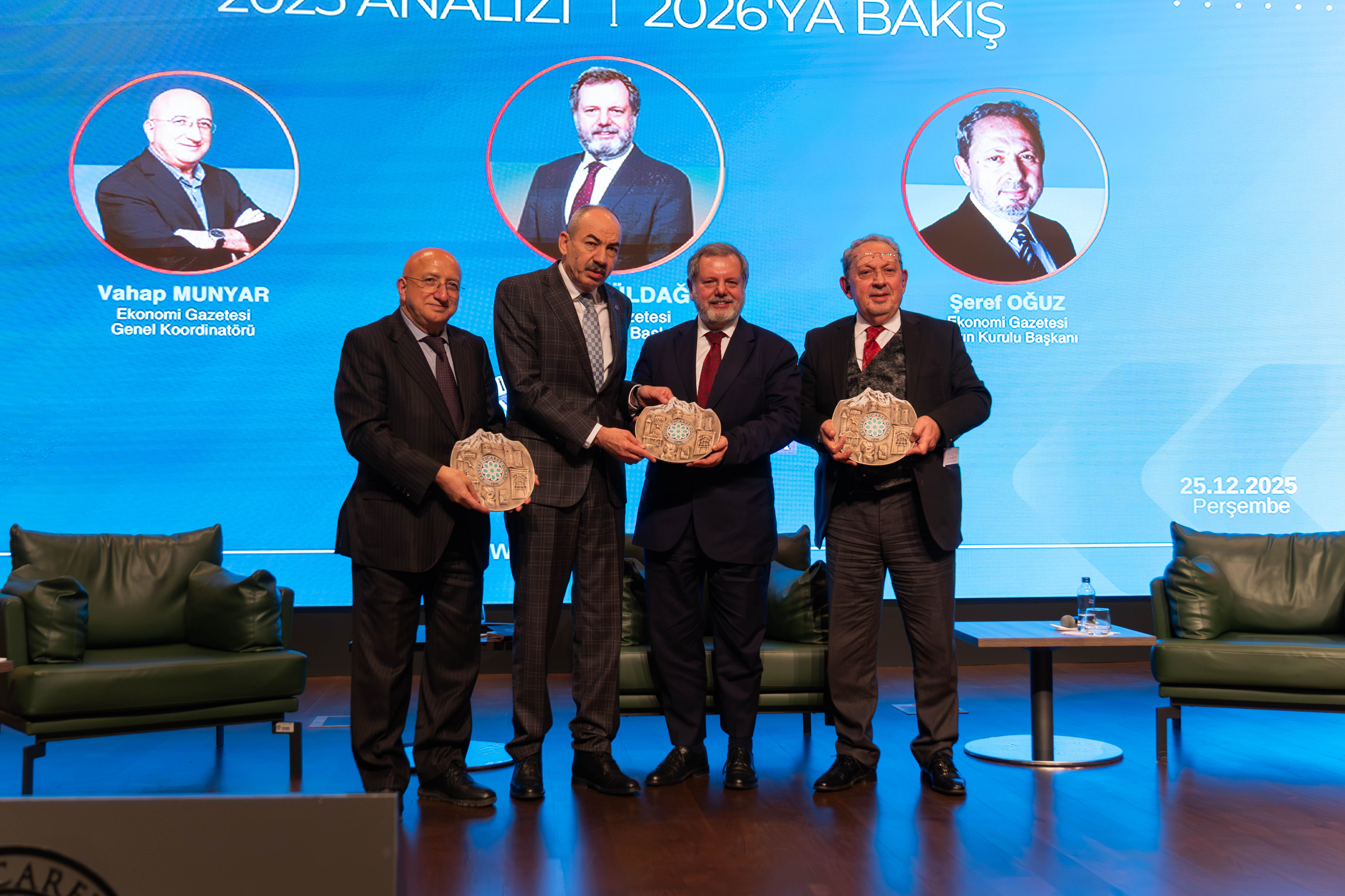 KTO Başkanı Gülsoy’un konuşmasının ardından “Türkiye Ekonomisinin Nabzı: 2025 Analizi, 2026’ya Bakış” başlıklı panele geçildi. Panelde Vahap Munyar, Hakan Güldağ ve Şeref Oğuz, 2025 yılıyla ilgili bir çerçeve çizerek, 2026 yılına yönelik beklenti ve öngörülerini katılımcılarla paylaştı.