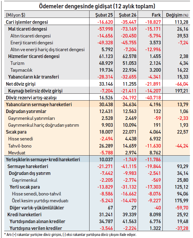 Şubat ayı ödemeler dengesi verileri önemli bir eşikte yer alıyor: Ülke siyasetini ve ekonomisini ciddi ölçüde etkileyen 19 Mart operasyonunun üzerinden 12 ay sonrası ile İran savaşının hemen öncesi.
