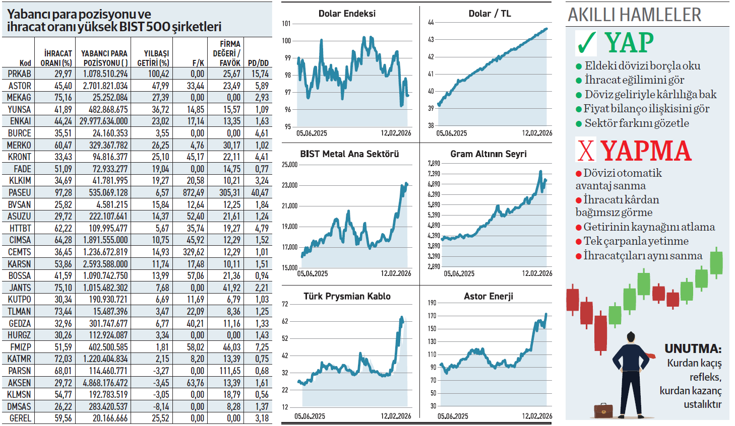Ekonomideki dalgalanmalarda eğer nakit kralsa, döviz nakdi imparatordur. Enka İnşaat kasasındaki 30 milyar TL’ye karşılık gelen yabancı para pozisyonuyla adeta banka gibi duruyor. Yüksek ihracat yapanlar ise iç pazar riskini adeta sıfırlamış görünüyor.