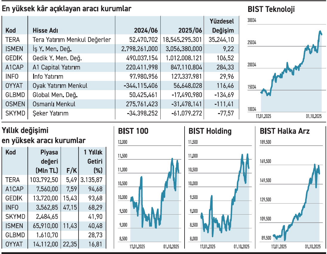 Firmaların kârlılığındaki büyüme uzun vadede hisselerin performansını destekleyen önemli bir göstergedir. Hisseler değerlendirilirken kârlılığın göz önünde bulundurulması öncelikli yaklaşım olsa da sürekliliği de önemsenmek gerekiyor. Borsada işlem gören 9 aracı kurumdan altısı yılın ilk yarısında kârını büyüttü, üçü zarar açıkladı. Şirketlerden sadece dördü kârını %100 ve üzeri artırmayı başardı. Bunlardan birinin kâr artışı %35.244 oranında gerçekleşti.