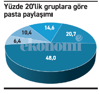 En yoksul kesimlerin payında önceki yıllara göre gözlenen artış yanıltıcı. Bu kesimde yer alanların geliri, daha önce de vurguladım, sosyal yardımlar sayesinde bir miktar artmış görünüyor, o kadar. En zengin yüzde 5’e kadar olanların, yani arada kalanların, üstelik bunların bir kısmı da görece zengin, adeta canı çıkmış!