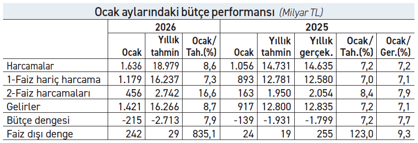 Dolayısıyla bütçe ocakta klasik hesaplamaya göre “şöyle böyle” kıvamında bir performans göstermiş.