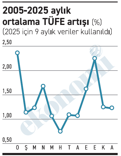 2005-2020 döneminin aritmetik ortalamasına göre aylık ortalama fiyat artışı ekim aylarında yüzde 2,03 olmuştu. Ekime en yakın artış, yüzde 1,17 ile ocak aylarında oluşmuştu.