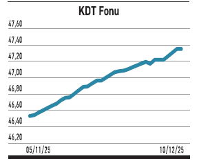 Garanti Portföy’ün Katılım Serbest (Döviz) Fonu (KDT) temmuzdan bu yana büyüklüğünü arttırıyor. Gelinen aşamada 4,98 milyar TL’ye yükseldi. Portföyün %82,71’i kamu yurt dışı kira sertifikalarında, %10,41’i özel sektör yurt dışı kira sertifikalarında yer alıyor. Aralığın ikinci haftasında 43,5 milyon TL nakit girişinin sürmesi ilginin korunduğuna gösteriyor. Yatırımcısı 1.288 seviyesinde. KDT, döviz cinsi faizsiz enstrümanlara odaklanan yapısıyla katılım esaslı, düşük oynaklık arayanlara hitap ediyor. Son altı ayda %14,09 getiri sağladı. Aynı sürede katılım döviz fonların ortalaması %9,64 ve doların %8,74 oldu. Her ikisinin de üzerinde bir performans gerçekleştirdi. Fon yıllık %0,40 yönetim ücretiyle 44 fon arasında ortalama altı duruyor. Katılım döviz fonlarda ücret %0,07 ile %1,5 arası değişiyor.
