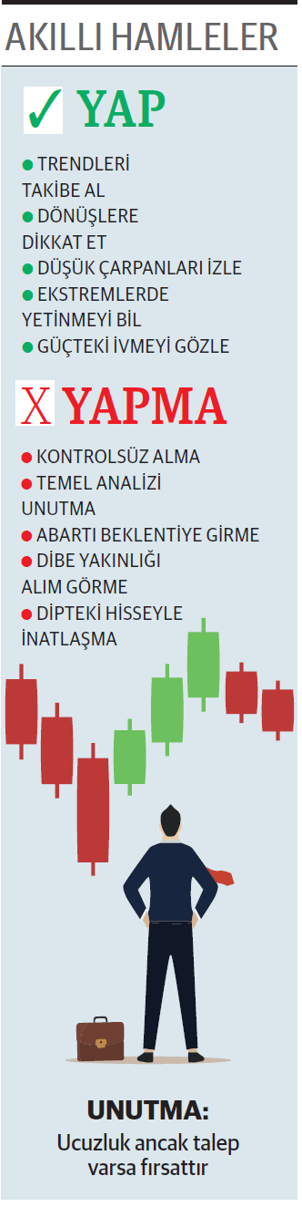 Yatırımcılar geride kalan beş yılda zirve korkusuyla dip cazibesi arasında sıkıştı. Piyasa, her defter değerinin altında işlem gören hisseyi kelepir olarak görmezken, satışlarla araya mesafe koymayı ihmal etmedi. Talep görenler gücünü korurken, sadece ucuz olduğu için portföylere eklenenler hayal kırıklığına yol açtı. Portföylerde kazanç kapısını aralayan anahtar, iskonto oranından ziyade yatırımcı güveni oldu.