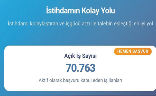 İŞKUR, düzenli olarak anlık açık iş sayısını açıklıyor. Örneğin 22 Aralık Pazartesi günü için açık iş sayısı 70.763 düzeyinde.