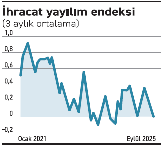 TİM verilerinden yola çıkarak hazırlanan ihracat yayılım endeksi, pandemiden sonraki güçlü artış döneminin yerini sınırlı ve belli başlı sektörlere dayalı bir büyümeye bıraktığını ortaya koyuyor.