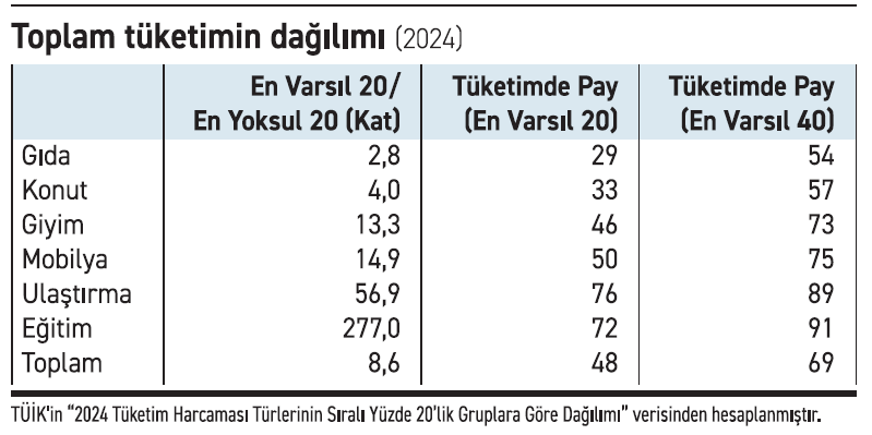 Gıda ve konut dışındaki sektörlerde harcamanın çok büyük kısmını en varsıl yüzde 40, hatta yüzde 20 yapıyor.