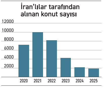 Bununla birlikte İran, Türkiye'de konut alan yabancıların ülkeleri sıralamasında genellikle Rusya ile birlikte ilk iki ülke arasında yer alıyor. 2020-2025 arasında İranlılar, yaklaşık 34 bin konut ile ülkemizde yabancılara yapılan satışların %13’ünü oluşturdular.