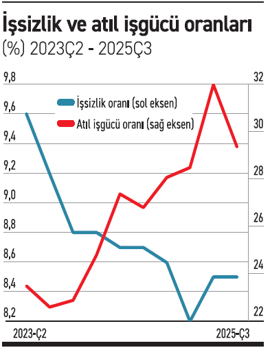Salı günü yılın üçüncü çeyreği itibariyle işgücü piyasasında yaşanan gelişmeleri öğrendik. Ekonomi programının başlangıcından bu yana bazı dönemler bir tarafa, işsizlik oranının genel eğilimi aşağıya doğru, daha geniş tanımlı işsizlik oranının (atıl işgücü oranı) eğilimi ise yukarıya doğru oldu. Öte yandan, işsizlik oranının aşağıya doğru eğilimi bu yılın son ikinci ve üçüncü çeyreklerinde durmuş gibi görünüyor. Üçüncü çeyrekte işsizlik oranı yüzde 8,5 düzeyinde. Üçüncü çeyrekte atıl işgücü oranı ise yüzde 39,2; çok yüksek.