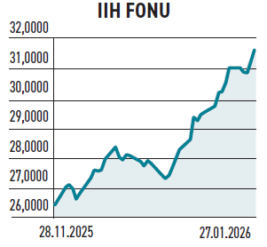 İstanbul Portföy’ün yönettiği Üçüncü Hisse Senedi Fonu (IIH), ağustostan bu yana küçülen bir yapıya sahipken, ocakta artan bir büyüme söz konusu. Ocak son hafta itibariyle büyüklüğü çıkarak 2,63 milyar TL’ye yükseldi. Portföyün %92,18’i hisselerden, %5,55’i yatırım fonu katılma paylarından, %2,14’ü para piyasası araçlarından oluşuyor. Fonda sürekli nakit çıkışı yaşanıyor. Ocakta çıkan para yaklaşık 50,7 milyon TL. Yatırımcı sayısı da kademeli olarak azalıyor. Şimdilerde 26.843 yatırımcısı bulunurken doluluk oranı %16,99 ve pazar payı %1,41 seviyesinde. IIH, yerli hisse senetlerine ağırlık veren aktif yönetim anlayışıyla hareket ediyor. Son bir yılda %22,07 getiri sağlarken, hisse fonların ortalaması %63,3 oldu.