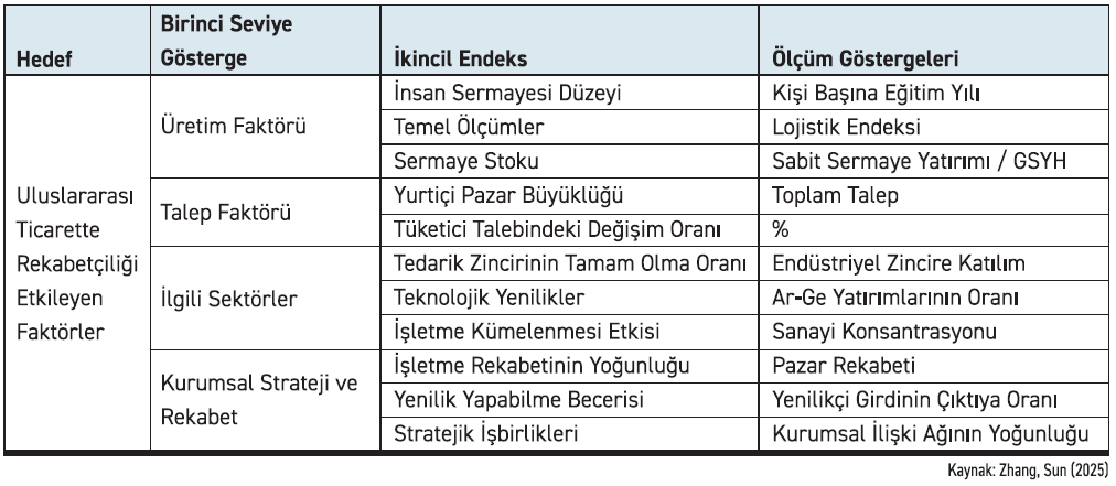 Şu rekabetçilik işine yakından bakalım. Yakın zamanda uluslararası ticarette rekabetçiliği destekleyen faktörleri çalışan bir akademik makale dikkatimi çekti. Çalışmada ön plana çıkan maddeleri aşağıdaki tabloda görebilirsiniz. İçlerinde kur ve asgari ücret yok.