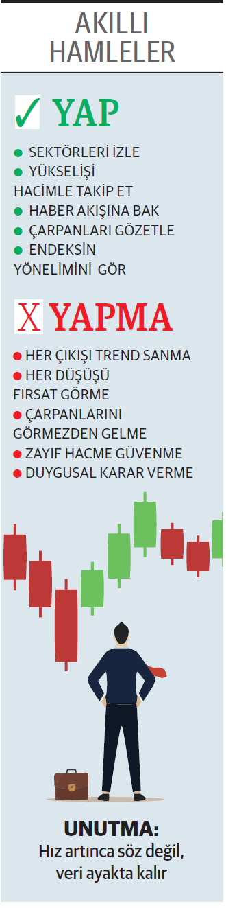 Geçtiğimiz hafta BIST Tüm Endeksi %1,93 yükseliş kaydetti. Fiyat hareketleri, yükselişin bir önceki haftaya göre yayıldığını gösteriyor. Toplam 324 hissenin artıda kapattığı haftada, 10 hisse%26’nın üzerinde prim yaptı. Yükselenlerin arasında üç hissenin %40’ı aşması dikkat çekti. Karşı tarafta 207 hisse değer kaybederken en sert düşüş %34’e ulaştı.