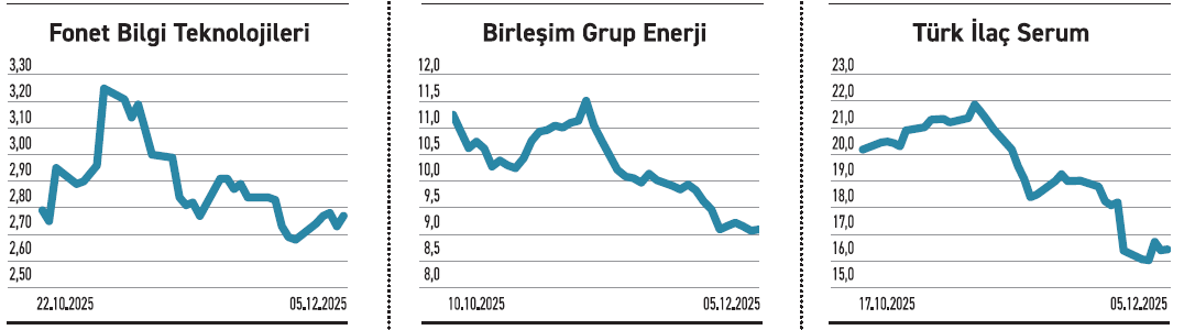 Haftanın en sert düşüşü ise %33,79 ile Destek Finans Faktoring’de yaşandı. 10 Ekim günü 431 TL’den başlayan çıkışı 2 Aralık günü 968 TL’ye kadar sürdü. Buradan gelen kâr satışları sert bir şekilde geri çekilmesine sebep oldu.