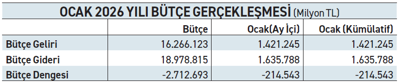 - Bunun en önemli nedeni, 2026 yılı merkezi yönetim bütçe giderlerinin yüzde 14.4’üne ulaşan faiz giderleri olmuş. Zira faiz giderleri Ocak ayında yüzde 180 artmış.