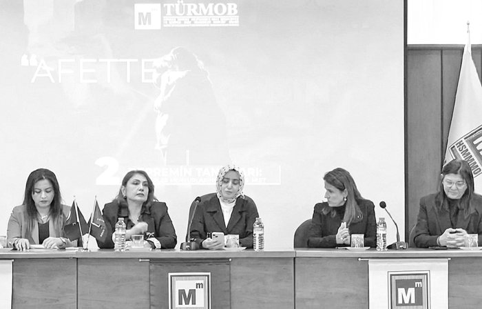 TÜRMOB’un “Dünya Emekçi Kadınlar Günü” vesilesiyle Hatay SMMMO’da düzenlediği “Afette Kadın” toplantısında İletişim Bilimci, Davranış Bilimci Prof. Uğur Batı’nın moderatörlüğünde “Depremin Tanıkları” gerçekleşti.