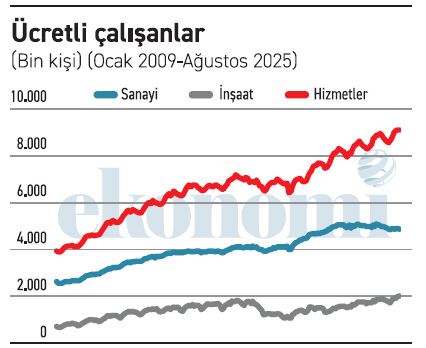 Bu ağustosa ilişkin son veriler, ücretli çalışanların yüzde 57,1’inin hizmetler ve ticaret sektörlerinde istihdam edildiğini ortaya koydu.