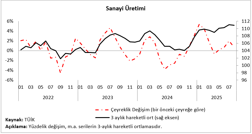 Öncelikle üretim tarafındaki verilerde önemli bir “baz etkisi” var. Geçen yıl yaz aylarında sanayi üretim endeksi sert bir düşüş yaşamıştı. Dolayısıyla bu yılın ikinci yarısında gerçekleşen yüksek artış, aslında geçen yılki düşük bazın bir yansıması oluyor. Yazımdaki grafikte de gösterdiğim üzere, üç aylık hareketli ortalamalarla sanayi üretimine bakacak olursak, üretimin özellikle, yılın ikinci yarısında yerinde saydığını görmüş oluyoruz.