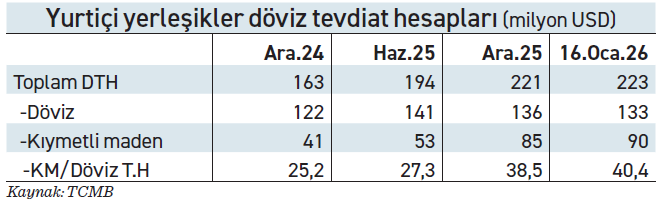 Öncelikle bir durum tespiti yapalım. Sonra da bankacılık sistemi açısından durumun nasıl değiştiğine ve bu değişikliğin neden riskli olabileceğine bakalım. Tabloda Aralık 2024’ten bu yana Türkiye’de yerleşik olanların bankalarda tuttuğu döviz tevdiat hesaplarını ve bu hesaplar içinde gösterilen kıymetli maden hesaplarının gelişimini görüyorsunuz.