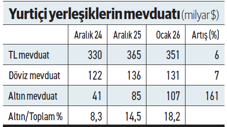 İncelenen dönemde TL mevduat dolar bazında sadece yüzde 6 artıyor. Döviz mevduatındaki artış da yine sadece yüzde 7. Buna karşın altın mevduatındaki artış yüzde 161 düzeyinde. Ya da şöyle söyleyelim: TL mevduat 21 milyar dolar ve döviz mevduatı 9 milyar dolar artarken, altın mevduatı 66 milyar dolar artıyor. Yani altın mevduatı döviz ve TL mevduatın toplamının iki katından daha fazla artıyor.