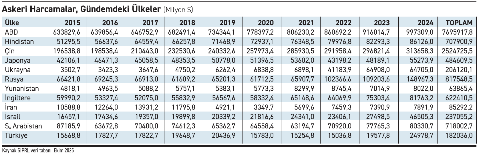 Başkan Trump, şu anda kapalı durumda olan Federal hükümetin bu duruma düşmesinin nedeni olarak diğer ülkeleri göstermekte. Ona göre ABD’nin yaptığı askeri harcamalar, göçmenlere aktardığı vergiler, düşük gümrük vergileri bütçe açığını, bu da borçlanma oranını yükseltmekte. Başkan kısmen bu savında haklı. ABD geçen yıl 997 milyar 309 milyon dolarlık askeri harcama yaptı, bu da GSYH’sinin 3,42’ine denk gelmekte. Kendisinin en yakın takipçisi Çin, 313 milyar 658 dolarlık harcama yaptı. GSYH’sine göre en fazla harcama yapan ülke, özel durumu nedeniyle yüzde 34,48 ile Ukrayna.