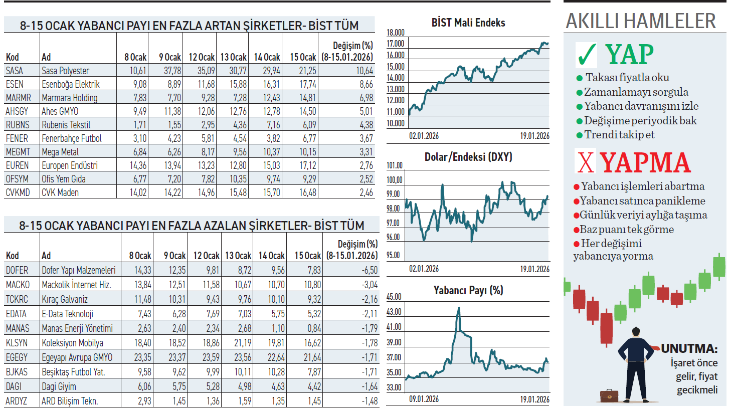 Borsada 8-15 Ocak tarihleri arasında yabancılar Esenboğa Elektrik ve Marmara Holding hisselerde günlük düzenli alımlarla toplama hareketi gerçekleştirirken, listenin lideri Sasa'da daha farklı bir hareketlilik yaşandı.