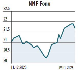 Kademeli azalan yatırımcı sayısı şimdilerde 24.325 seviyesinde. Yüzde 5,47 doluluk oranı ve %1,93 pazar payına sahip. NNF, ağırlıklı olarak borsaya yatırım yaparak hisse senedi piyasasındaki getiriyi yakalamayı amaçlıyor. Portföyünde ağırlıklı olarak ULKER, PGSUS, INFO ve TRGYO hissesi bulunuyor. Son bir yılda %33,9 getiri sağlarken, BIST 100 Endeksi aynı sürede %30,07 yükseliş kaydetti.